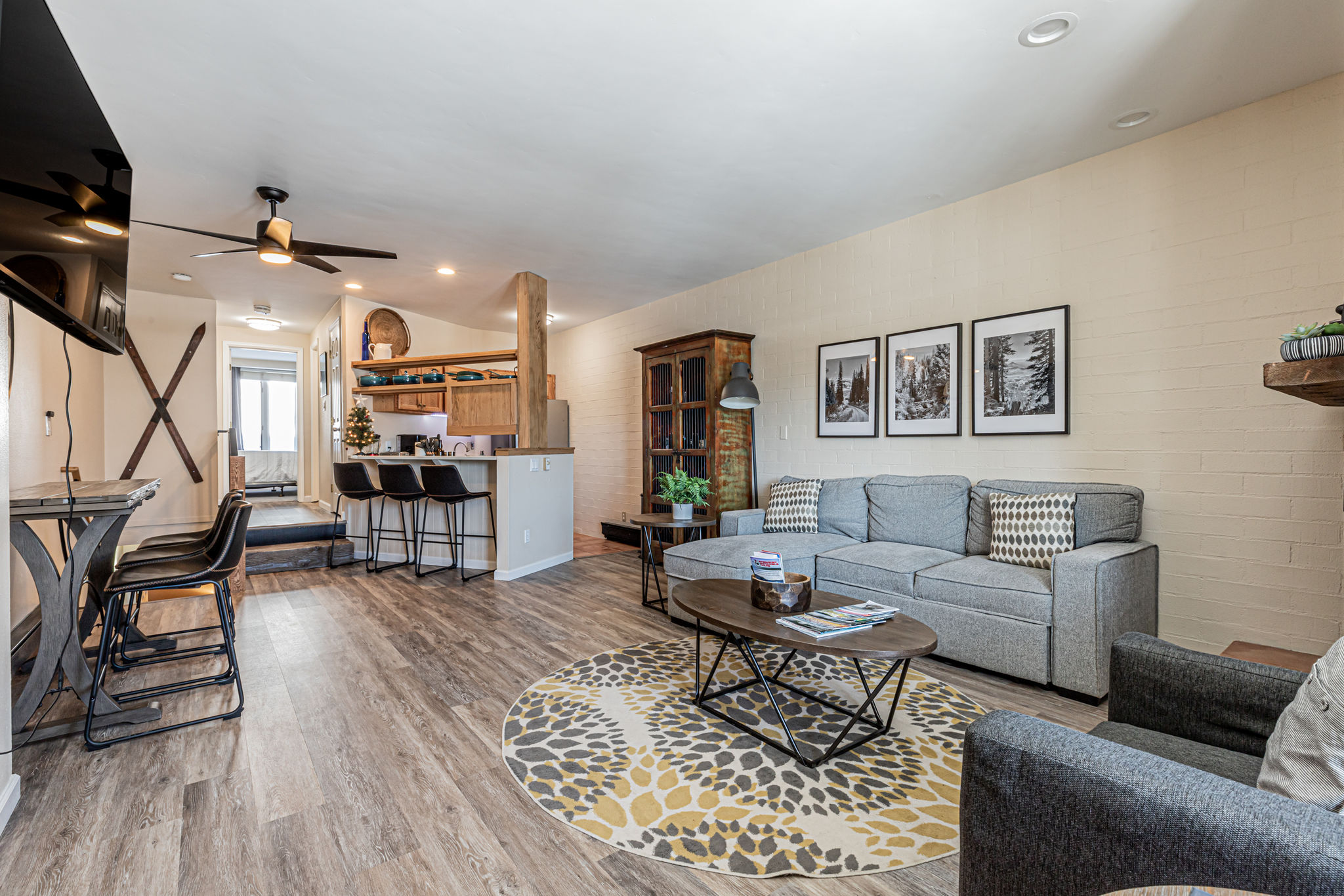 Located just steps from the world-renowned Steamboat Ski Resort slopes and summer Bike Park, this two-story Ski Time Square condo provides year-round adventure and convenience. Offering two bedrooms, two bathrooms, and 1,056 square feet of well-designed living space, this property is in the coveted GREEN Rental Zone, allowing for vacation… Read Morerentals—an ideal investment opportunity or a walk-to-ski mountain retreat. The thoughtfully designed layout features a bedroom and bathroom on each level. The main level boasts a spacious living area with large windows allowing natural light, a cozy gas fireplace, and an open kitchen with stainless steel appliances, barstool seating, and luxury vinyl flooring. This level also includes a generously sized bedroom and a full bathroom. On the lower level, you'll find a large bedroom, a full bathroom, and a versatile bonus room perfect for a home office or additional flex space. Residents can enjoy premium amenities such as a hot tub, private parking, ski lockers, laundry facilities, and bike storage. Enjoy the convenience of walking to skiing, dining, shopping, and the free city bus system, making it easy to explore on the mountain and downtown. Don't miss this rare opportunity to own an updated property in a private location yet still within walking distance of the base area excitement.Read Less